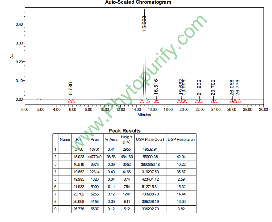 提供相关图谱和分析方法指导,可以提供包括色谱柱,对照品和分析方法在内的含量测定整体服务包,价格优惠。