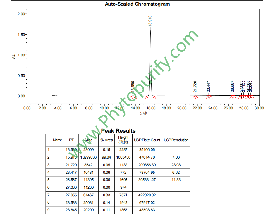 提供相关图谱和分析方法指导,可以提供包括色谱柱,对照品和分析方法在内的含量测定整体服务包,价格优惠。