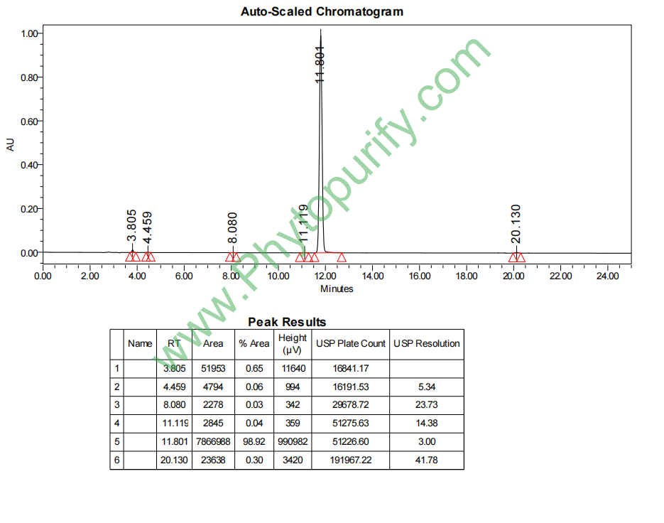 提供相关图谱和分析方法指导,可以提供包括色谱柱,标准品和分析方法在内的含量测定整体服务包,价格优惠。