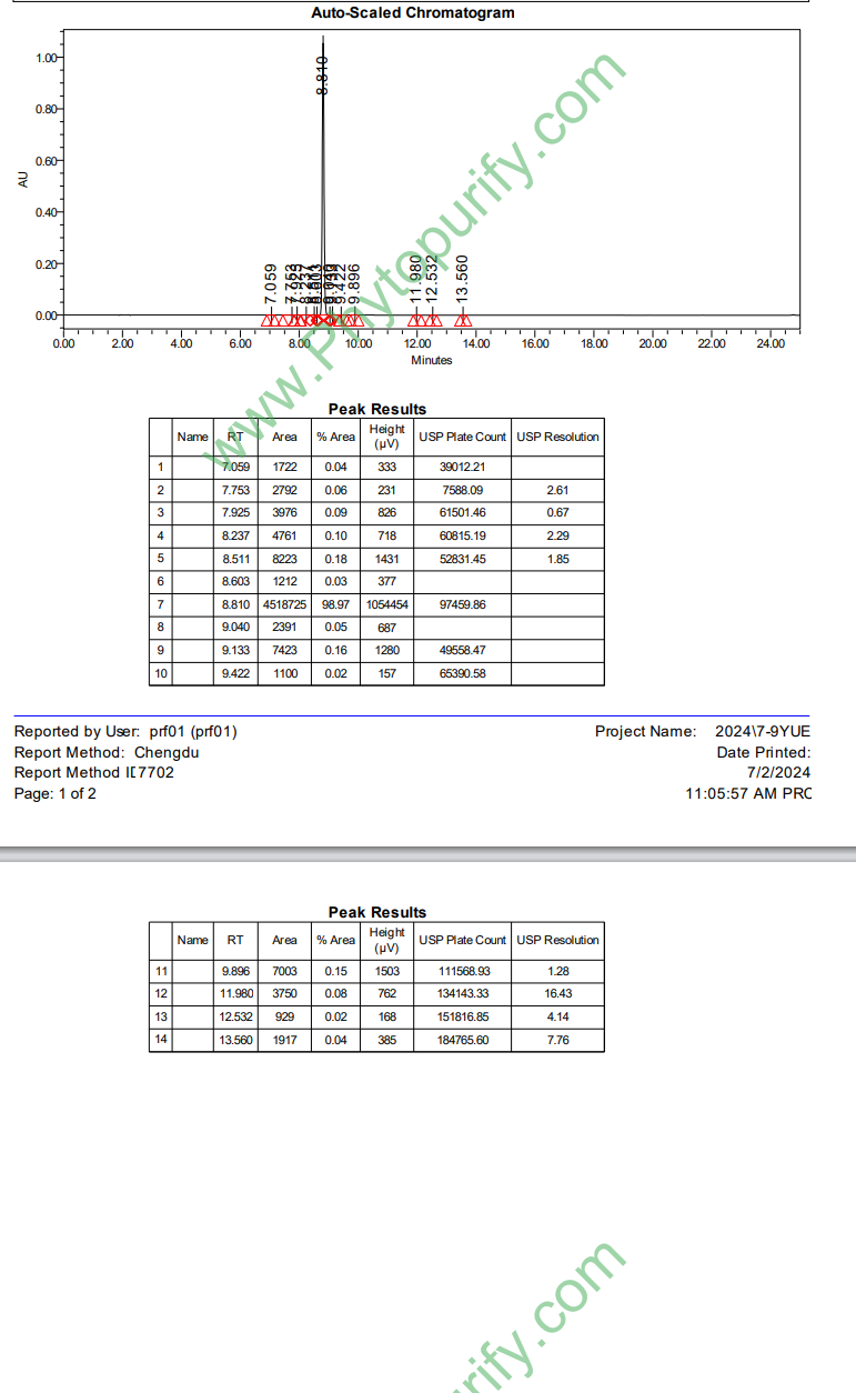 提供相关图谱和分析方法指导,可以提供包括色谱柱,标准品和分析方法在内的含量测定整体服务包,价格优惠。