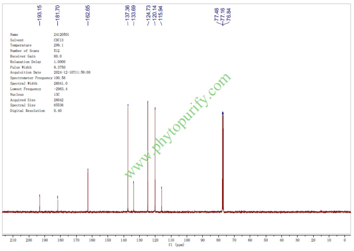 来源: Occurs in roots of Rheum palmatum (Turkey rhubarb), leaves and stems of Xyris semifuscata, tissue culture of Cinchona ledgeriana and leaves of Pyrrhalta luteola. Watersipora subtorquata. Prod. by Actinoplanes louijashanensis C983 and Phomo