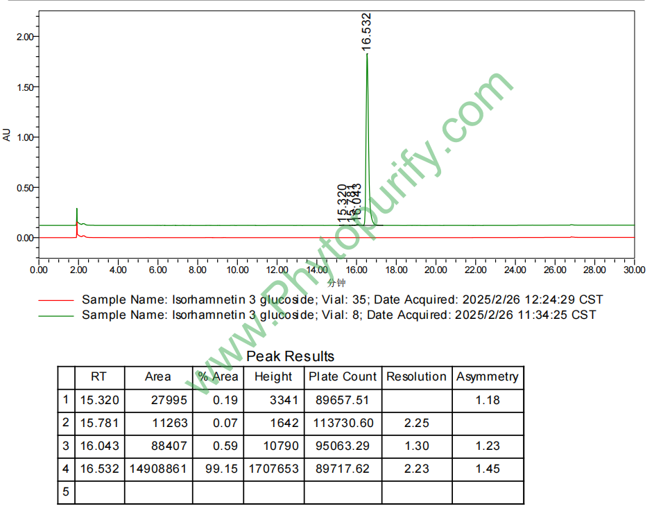 异鼠李素-3-O-葡萄糖苷的HPLC图谱