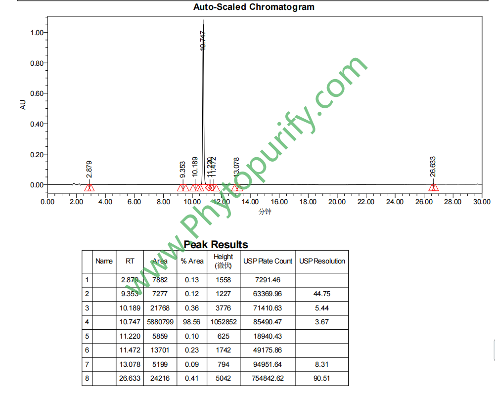 提供相关图谱和分析方法指导,可以提供包括色谱柱,标准品和分析方法在内的含量测定整体服务包,价格优惠。