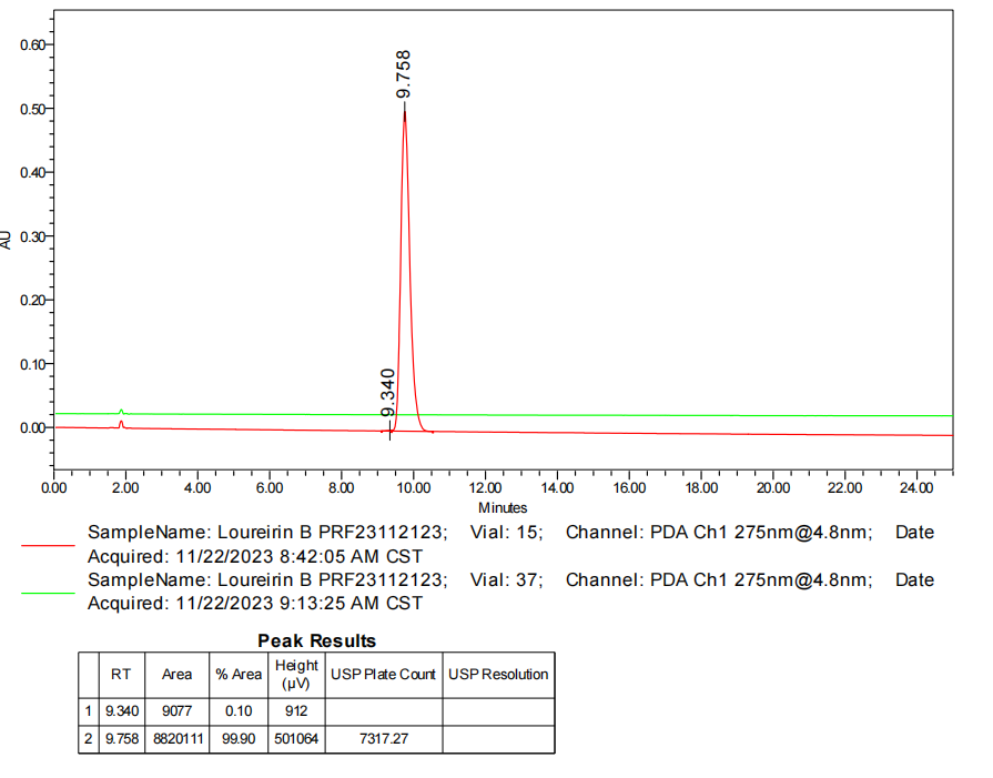 龙血素B的HPLC图谱