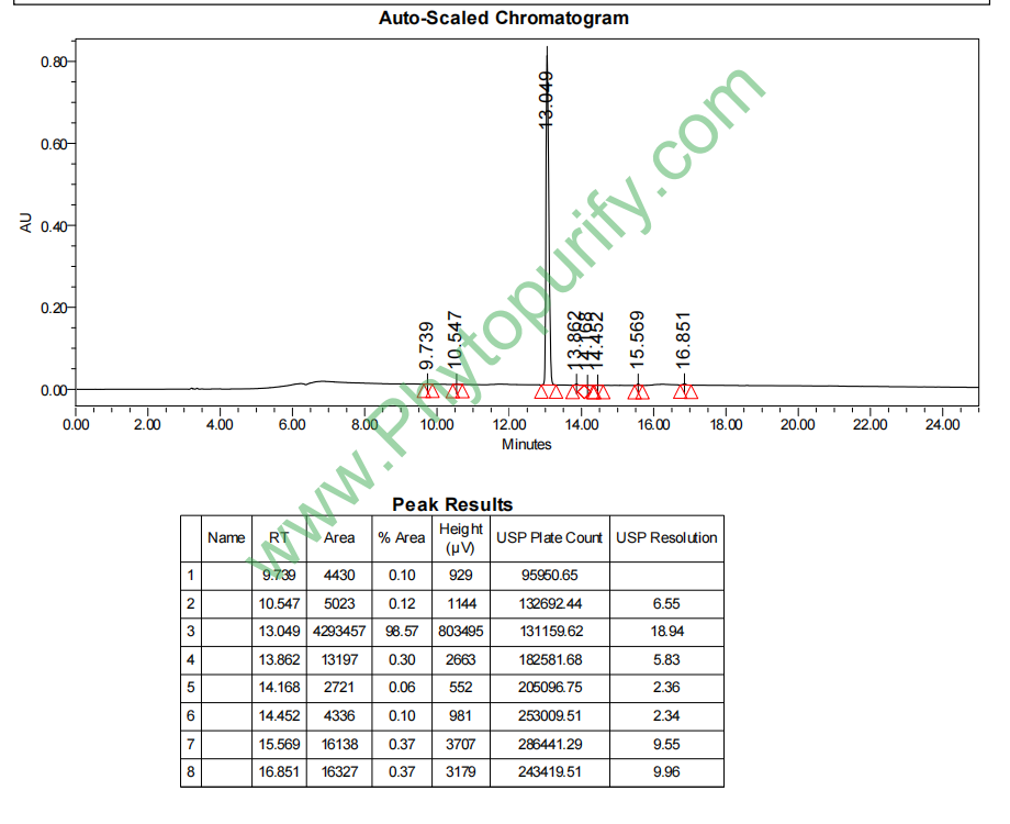提供相关图谱和分析方法指导,可以提供包括色谱柱,标准品和分析方法在内的含量测定整体服务包,价格优惠。