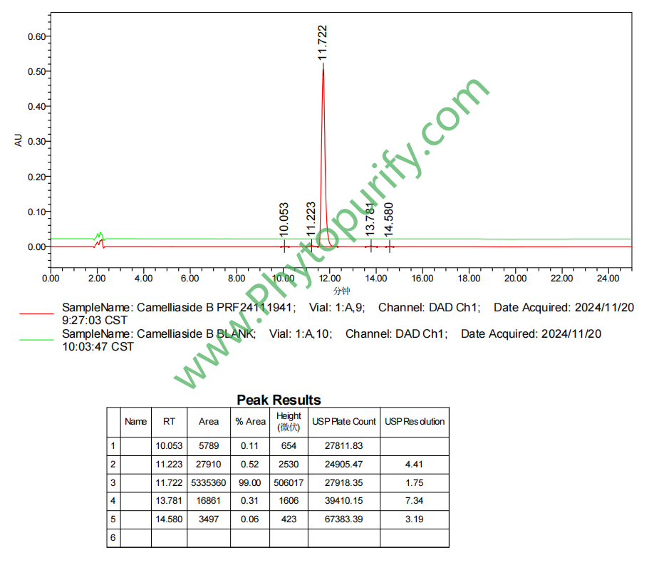 山茶苷B的HPLC图谱