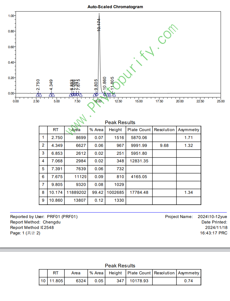 提供相关图谱和分析方法指导,可以提供包括色谱柱,标准品和分析方法在内的含量测定整体服务包,价格优惠。