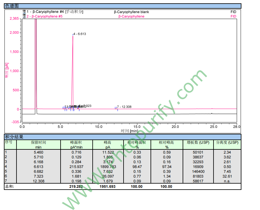 β-石竹烯的HPLC图谱