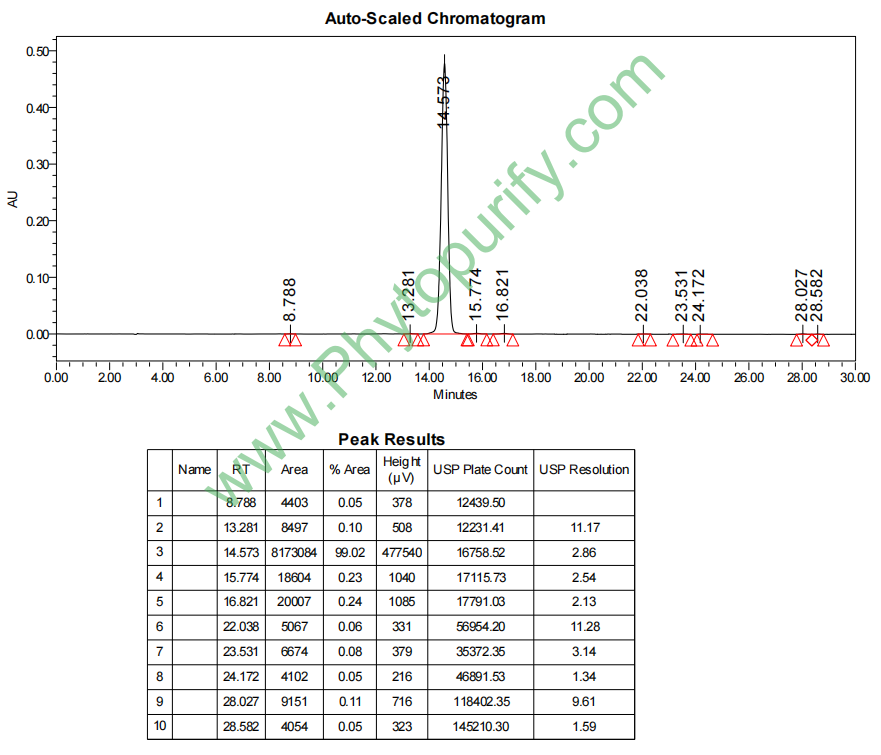 提供相关图谱和分析方法指导,可以提供包括色谱柱,标准品和分析方法在内的含量测定整体服务包,价格优惠。