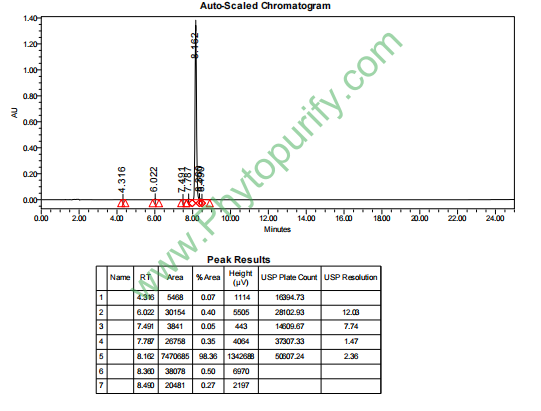 提供相关图谱和分析方法指导,可以提供包括色谱柱,标准品和分析方法在内的含量测定整体服务包,价格优惠。
