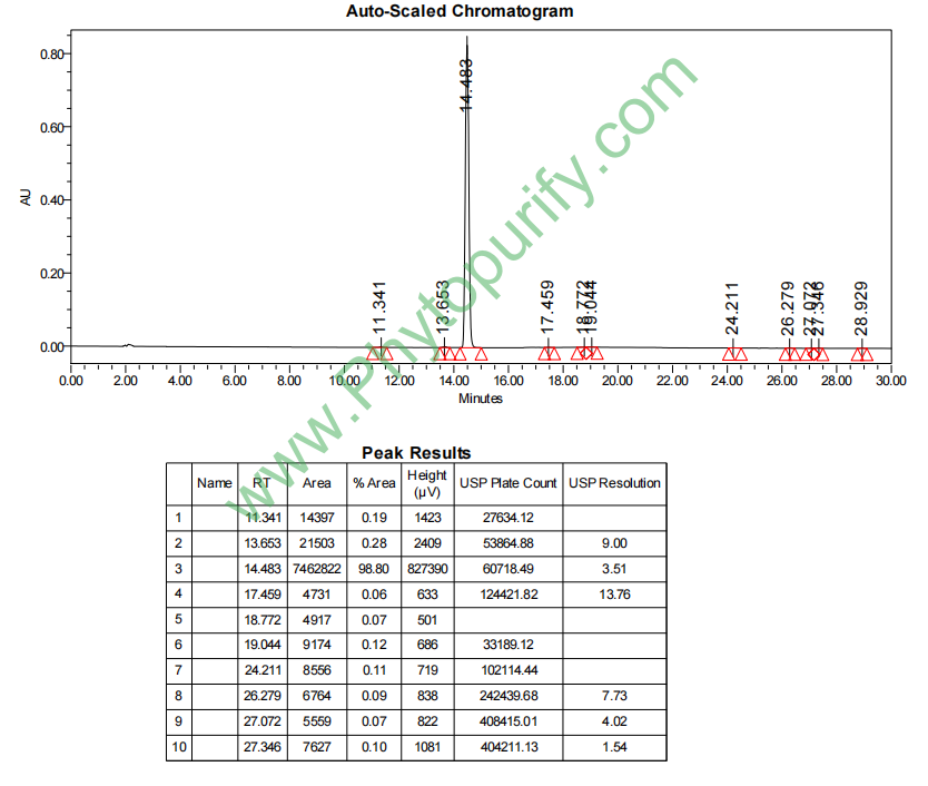 提供相关图谱和分析方法指导,可以提供包括色谱柱,标准品和分析方法在内的含量测定整体服务包,价格优惠。