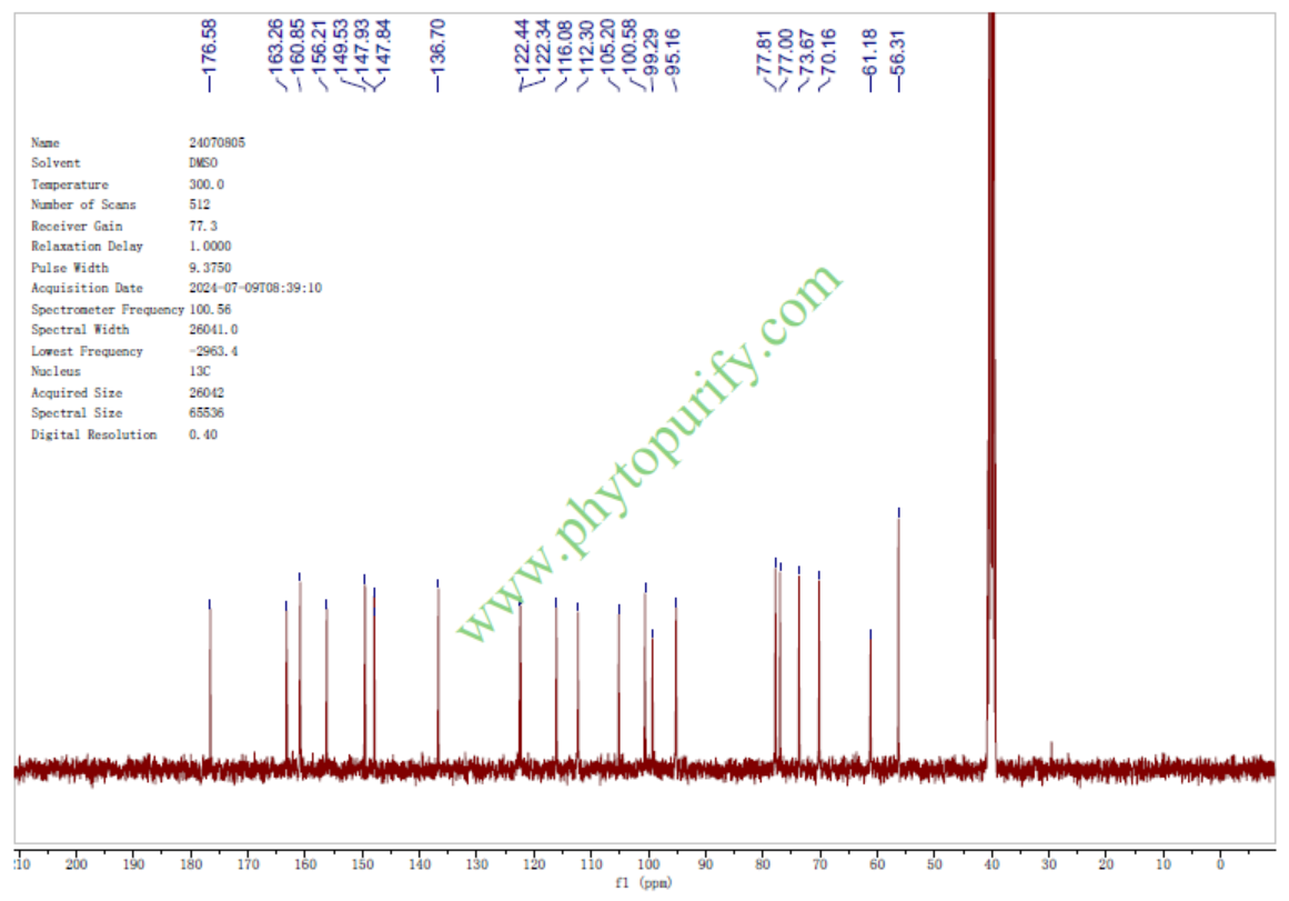 异鼠李素-7-O-β-D-葡萄糖苷的核磁图谱