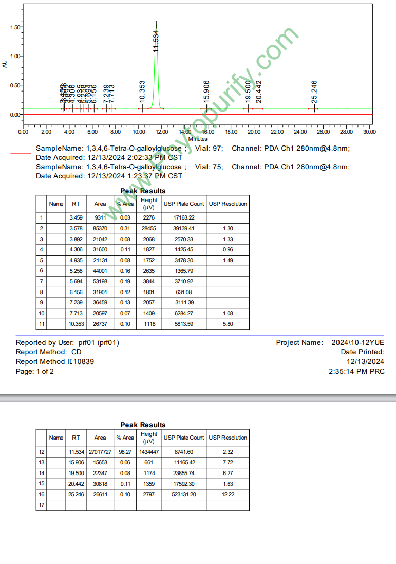 产品名称: 1,3,4,6-四没食子酰葡萄糖
